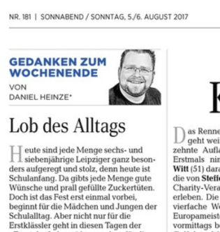 Diesen Text habe ich für die Leipziger Volkszeitung geschrieben, in der er am 5. August 2017 in der Kolumnen-Reihe “Gedanken zum Wochenende” erschienen ist.