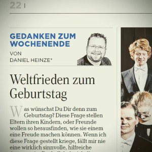 Was wünschst Du Dir denn zum Geburtstag? Diese Frage stellen Eltern ihren Kindern, oder Freunde wollen so herausfinden, wie sie einem eine Freude machen können. Wenn ich diese Frage gestellt kriege, fällt mir nie eine wirklich sinnvolle, hilfreiche Antwort ein. Deshalb habe ich die Angewohnheit entwickelt, auf die Frage „Was wünschst Du Dir zum Geburtstag“ mehr oder weniger flapsig zu antworten: „Ach, nichts Besonderes. Ich wünsche mir Weltfrieden, sonst nix.“