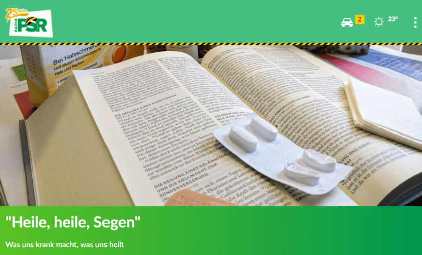 Schon ein paar Wochen her, dass diese Serie bei RADIO PSR on air war, da sie aber dauerhaft online abrufbar ist, möchte ich hier gerne auf sie hinweisen: in der Fastenzeit 2017 haben wir uns in einer sechsteiligen Reihe mit dem Titel „Heile, heile, Segen“ den Themen Krankheit, Gesundheit und Heil gewidmet.